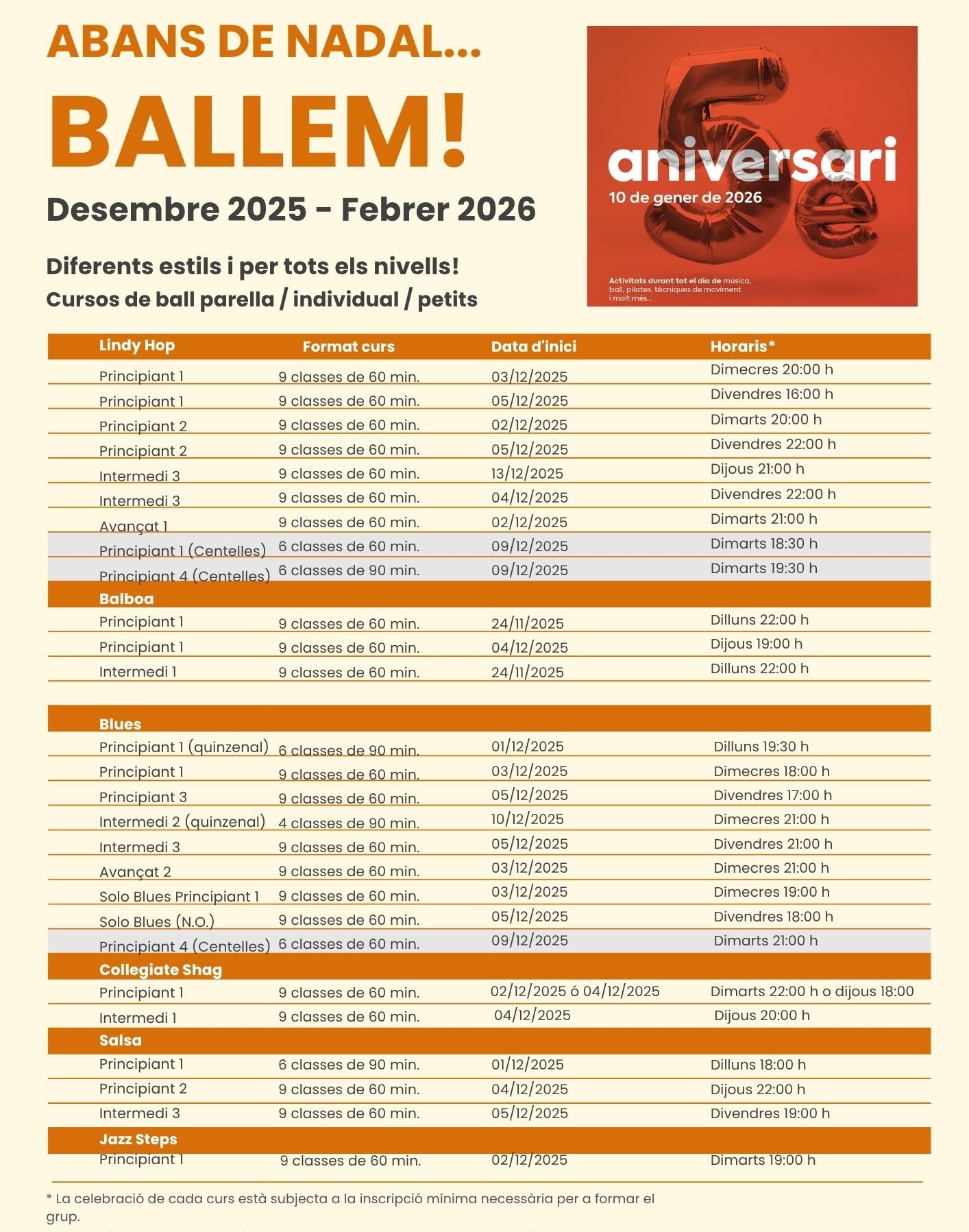 Dia Vs Sessió Ball Centelles + Dimecres Quinzenal